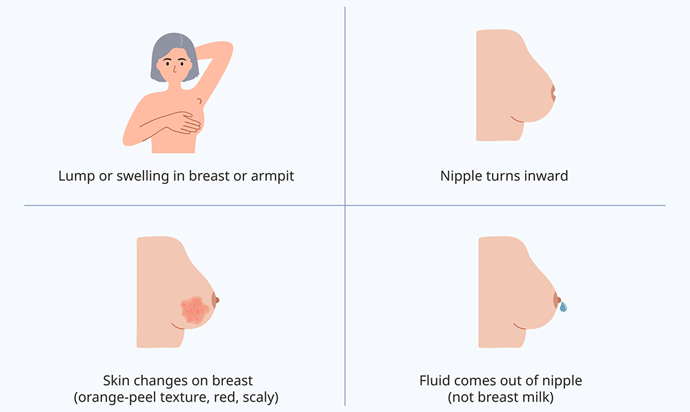 | Other signs | Skin dimpling, nipple changes, discharge, shape change |